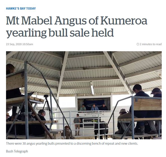 Click on image to read the full article in the Hawke's Bay Today (Bush Telegraph) paper or view a PDF copy hereNo bull: Angus beast sells for $92,000 at auctionEsther Taunton – Stuff – 25 June 2020SCREENSHOTThe two owners of "Lot 1," sold by Wairoa's Cricklewood Angus stud, will share custody of the animal.An angus bull has sold for an eye-watering $92,000 after two buyers pooled their resources to bag the beast.